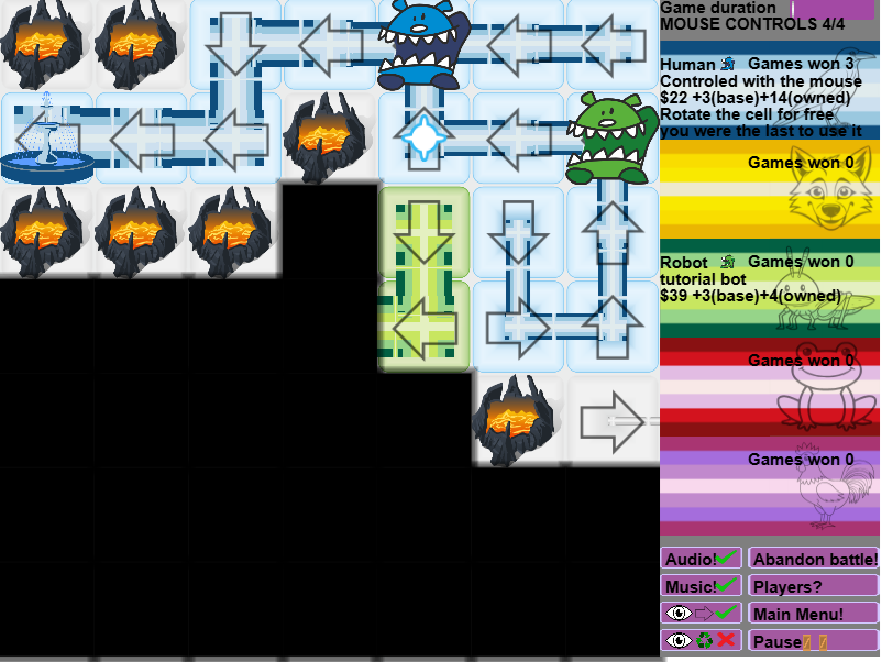 I didn't play multiplayer but in solo campaign I often used the speed of the mouse to quickly beat an opponent going straight into my field, with the hope he doesn't have time to cut the path I uses to reach his one, then I quickly go back to my fountain because I don't really see where are the rivers carrying my player. So I wonder if some direct confrontation between players would be more about speed.